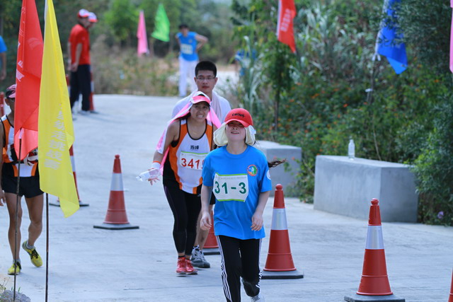 隊(duì)長丁奕峰和賀曉娟跑在一處,因?yàn)檫@個(gè)項(xiàng)目,女生跑到終點(diǎn)是很重要的條件,所以他不斷在賀曉娟身旁鼓著勁,上坡艱難時(shí),還不時(shí)幫著推上一把。在他的支持下,賀曉娟成功地跑完了全程,還是集團(tuán)這些隊(duì)伍里,第一個(gè)到達(dá)的女生。而丁奕峰,心甘情愿地做她身后的助推器,比她遲了兩秒也依然樂呵呵的。