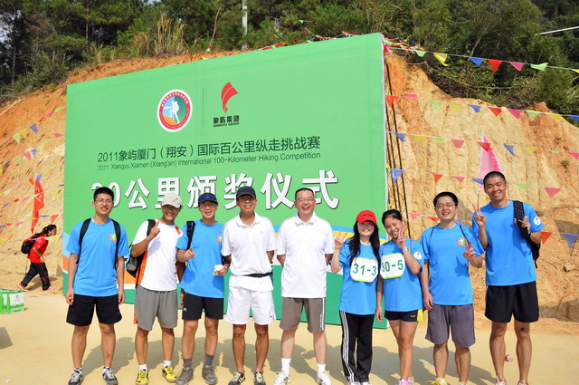 30公里縱走賽是組委會(huì)特別為業(yè)余組的選手開設(shè)的,分為團(tuán)隊(duì)賽和個(gè)人賽,終點(diǎn)設(shè)在翔安的準(zhǔn)提寺。我與同事施閩南、丁奕峰和賀曉娟組成了“閩南一隊(duì)”。