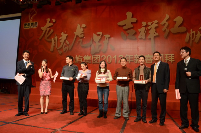 兔樂(lè)豐倉(cāng)送舊年,龍騰喜浪迎新紀(jì)。1月14日晚,年度表彰大會(huì)后,象嶼集團(tuán)2012年新春團(tuán)拜會(huì)在廈門國(guó)際會(huì)展酒店隆重舉行。象嶼集團(tuán)在廈各公司員工、異地公司代表、退休老同志等上千人歡聚一堂,喜迎龍年新春佳節(jié)。王龍雛董事長(zhǎng)率集團(tuán)黨委會(huì)、董事會(huì)、經(jīng)營(yíng)班子成員共同舉杯給全體員工拜年,向全體象嶼同仁、家屬和離退休老同志表示親切的慰問(wèn)和美好的祝愿。對(duì)員工過(guò)去一年的辛勤付出表示衷心感謝和誠(chéng)摯敬意。