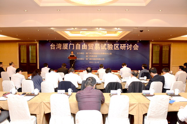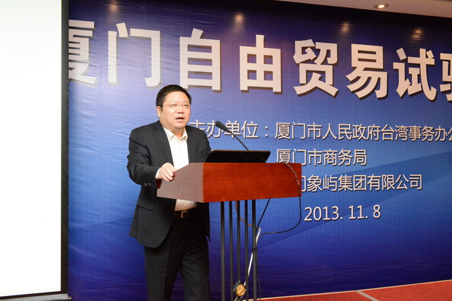 11月8日上午,由市臺辦、市商務局主辦,象嶼集團承辦的臺灣廈門自由貿易試驗區(qū)研討會在廈門拉開序幕。兩岸企業(yè)家、專家學者齊聚廈門,就如何建設“自由貿易試驗區(qū)”進行深入研討,共同探索建立自由貿易區(qū)的構想、方法和途徑,為深化廈臺經貿合作,實現互利共贏出謀獻策。