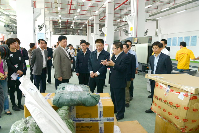 調(diào)研現(xiàn)場(chǎng),王蒙徽書記等市領(lǐng)導(dǎo)聽(tīng)取了王龍雛董事長(zhǎng)、陳方副總裁對(duì)廈門跨境電商產(chǎn)業(yè)園情況的介紹,察看了作業(yè)現(xiàn)場(chǎng)。王書記在調(diào)研過(guò)程中對(duì)象嶼集團(tuán)在自貿(mào)試驗(yàn)區(qū)推動(dòng)過(guò)程中邊摸索、邊推動(dòng),敢于先行先試,開(kāi)拓海運(yùn)快件物流新通路,構(gòu)建廈門跨境電商產(chǎn)業(yè)園的新思維、新模式給予了肯定,對(duì)海關(guān)、國(guó)檢給予的鼎力合作支持表示感謝。