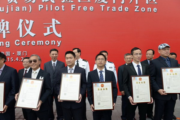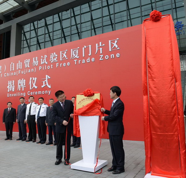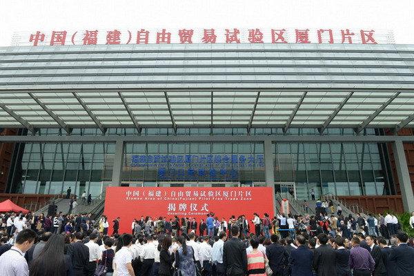 中國(福建)自由貿易試驗區(qū)廈門片區(qū)在兩岸貿易中心舉行揭牌儀式