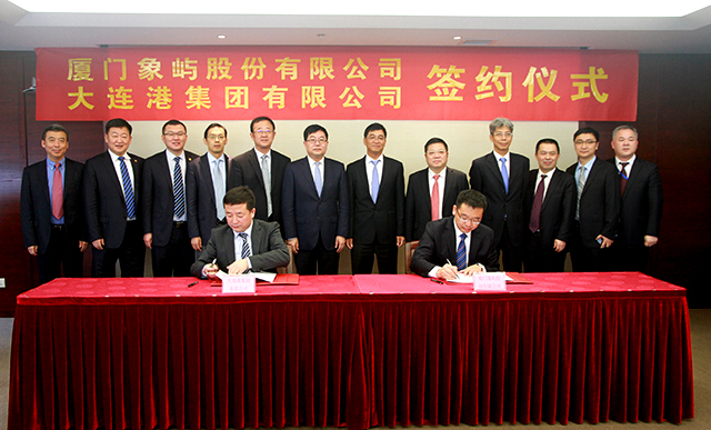 1月7日,大連港集團董事長張乙明一行到訪象嶼集團,與象嶼集團董事長張水利等就雙方合作展開交流和討論。會談結束后舉行了合作簽約儀式,象嶼股份鄧啟東總經理與大連港股份魏明暉總經理分別代表雙方公司在《戰(zhàn)略合作框架協(xié)議》上簽字。此次戰(zhàn)略合作的簽署,將進一步發(fā)揮雙方的產業(yè)優(yōu)勢,鞏固并延伸雙方在港口物流、貿易、資本層面的深度合作。