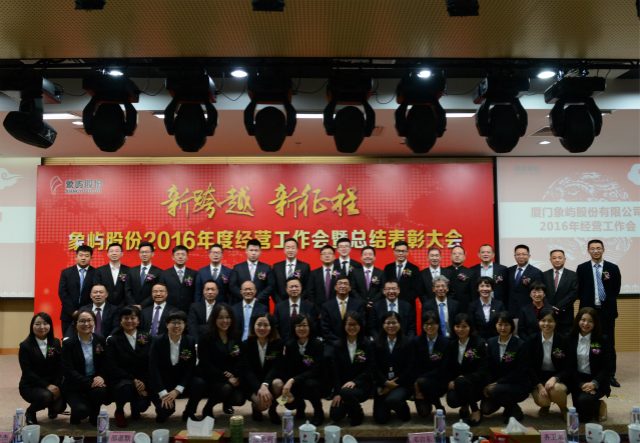 1月16日,象嶼股份2016年度經(jīng)營工作會(huì)暨年度總結(jié)表彰大會(huì)在廈門國際航運(yùn)中心隆重召開。會(huì)議由股份公司鄧啟東總經(jīng)理主持,象嶼集團(tuán)董事長張水利、副總裁陳方、黨委副書記邵薀默等領(lǐng)導(dǎo)蒞會(huì),象嶼股份經(jīng)營班子、旗下各投資企業(yè)高管及員工代表130余人參加了會(huì)議。