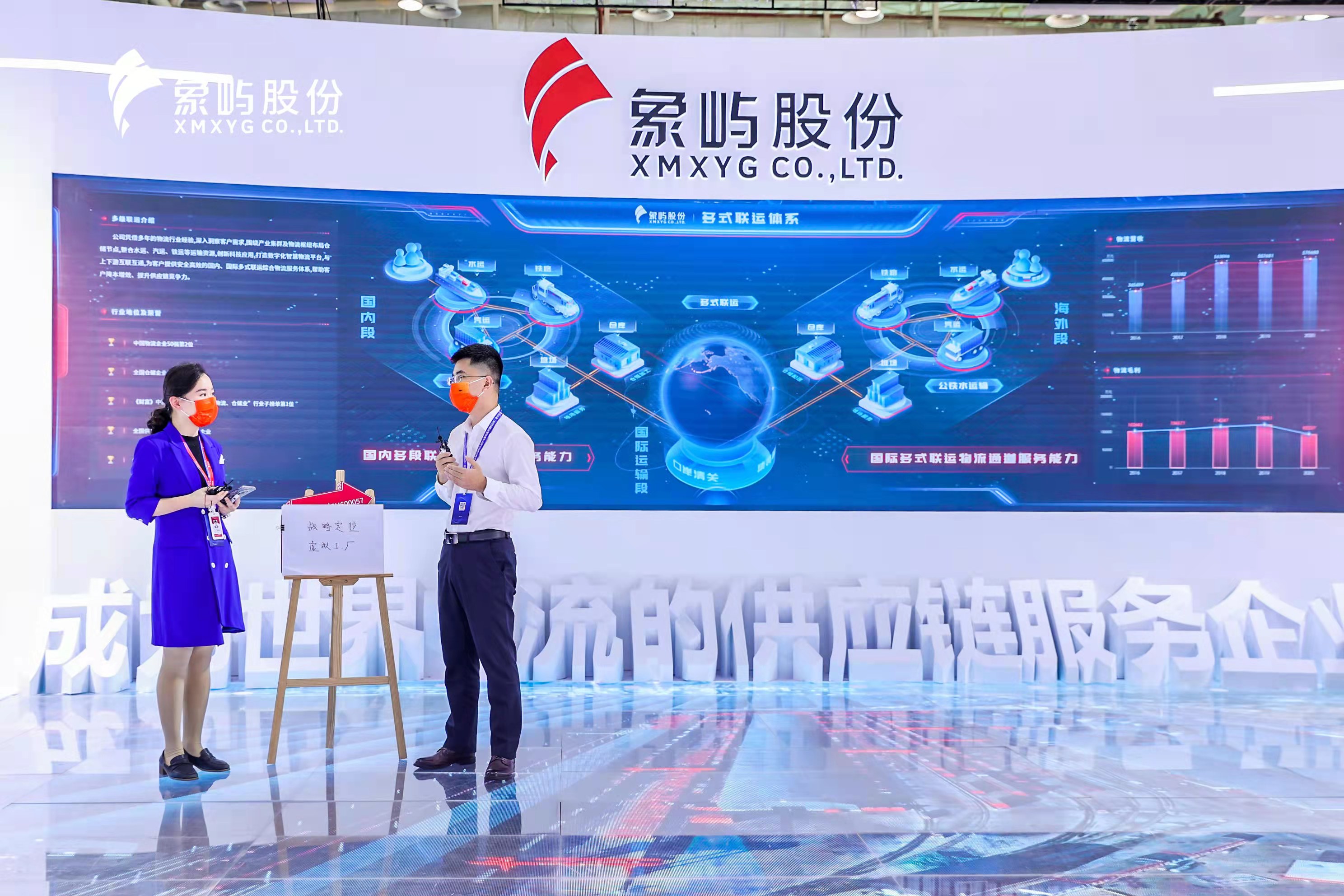 天屏地屏主屏三屏互動, 全景地屏展現(xiàn)了象嶼股份農(nóng)產(chǎn)品、能源化工、金屬礦產(chǎn)供應(yīng)鏈板塊的業(yè)務(wù)亮點,通過東北象嶼糧倉、陜西場站、印尼不銹鋼冶煉項目等典型項目實景展示,進一步詮釋象嶼業(yè)務(wù)模式及國際化發(fā)展!